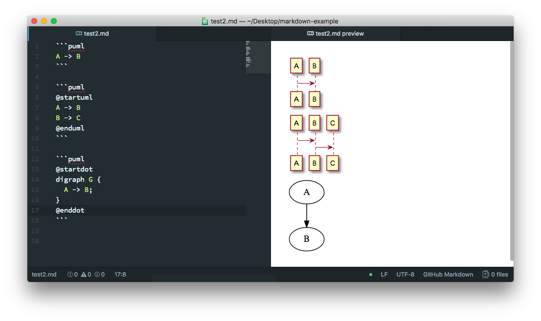Une extension vscode et atom supportant le rendu de blocs de code PlantUML se trouvant directement dans un fichier markdown (*.md).